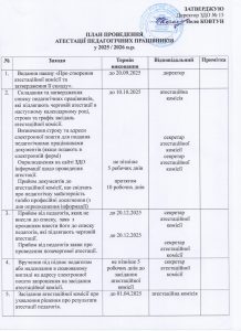 План проведення атестації педагогічних працівників у 2025/2026 н.р.